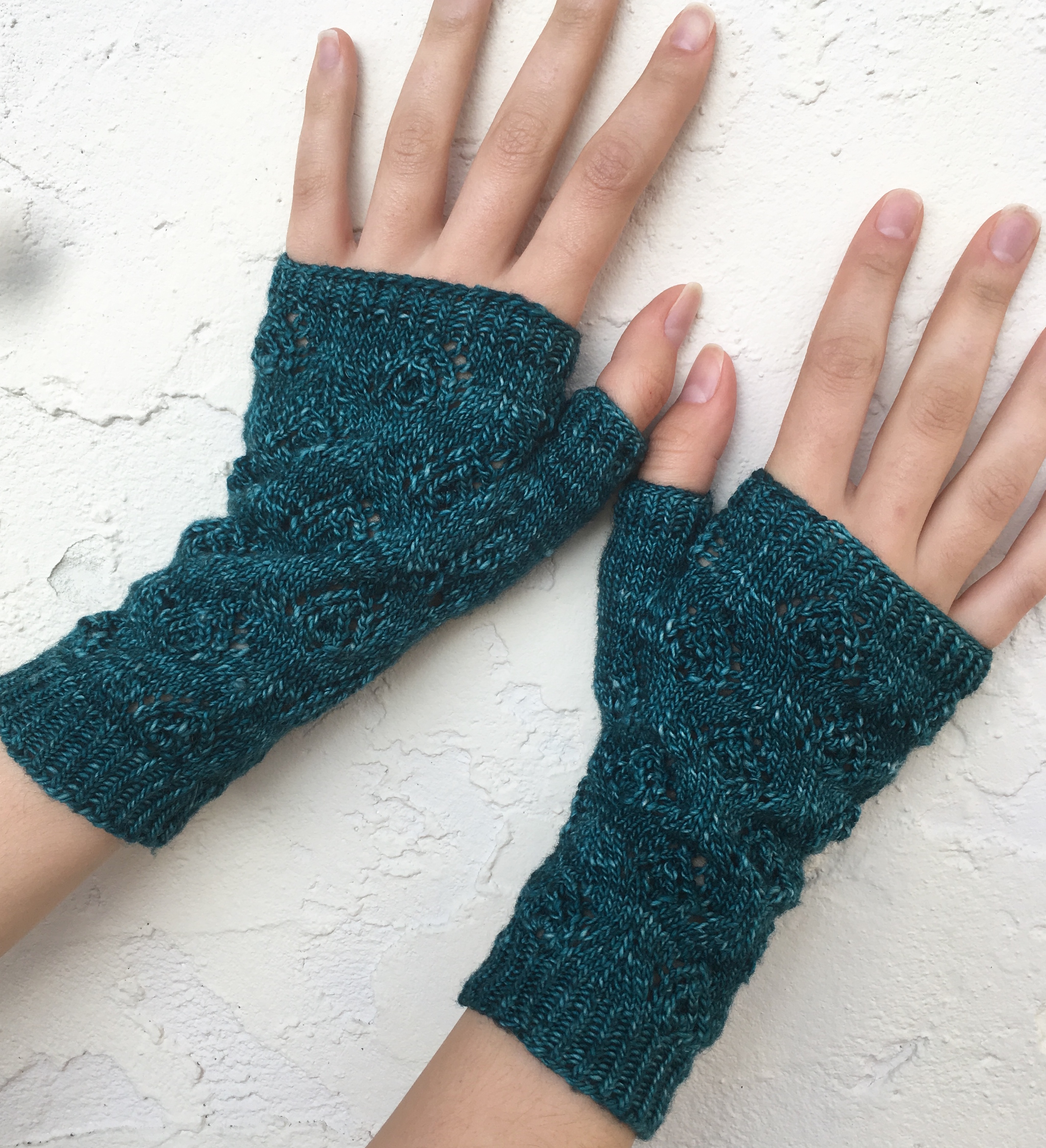 After some more fiddling and frogging, I designed these fingerless gloves, my first fingerless glove pattern: Eye of the Peacock Gloves. I love them! And they were such a quick knit, I decided to make them again, but shorter and smaller, which I also included in the Ravelry pattern, btw.